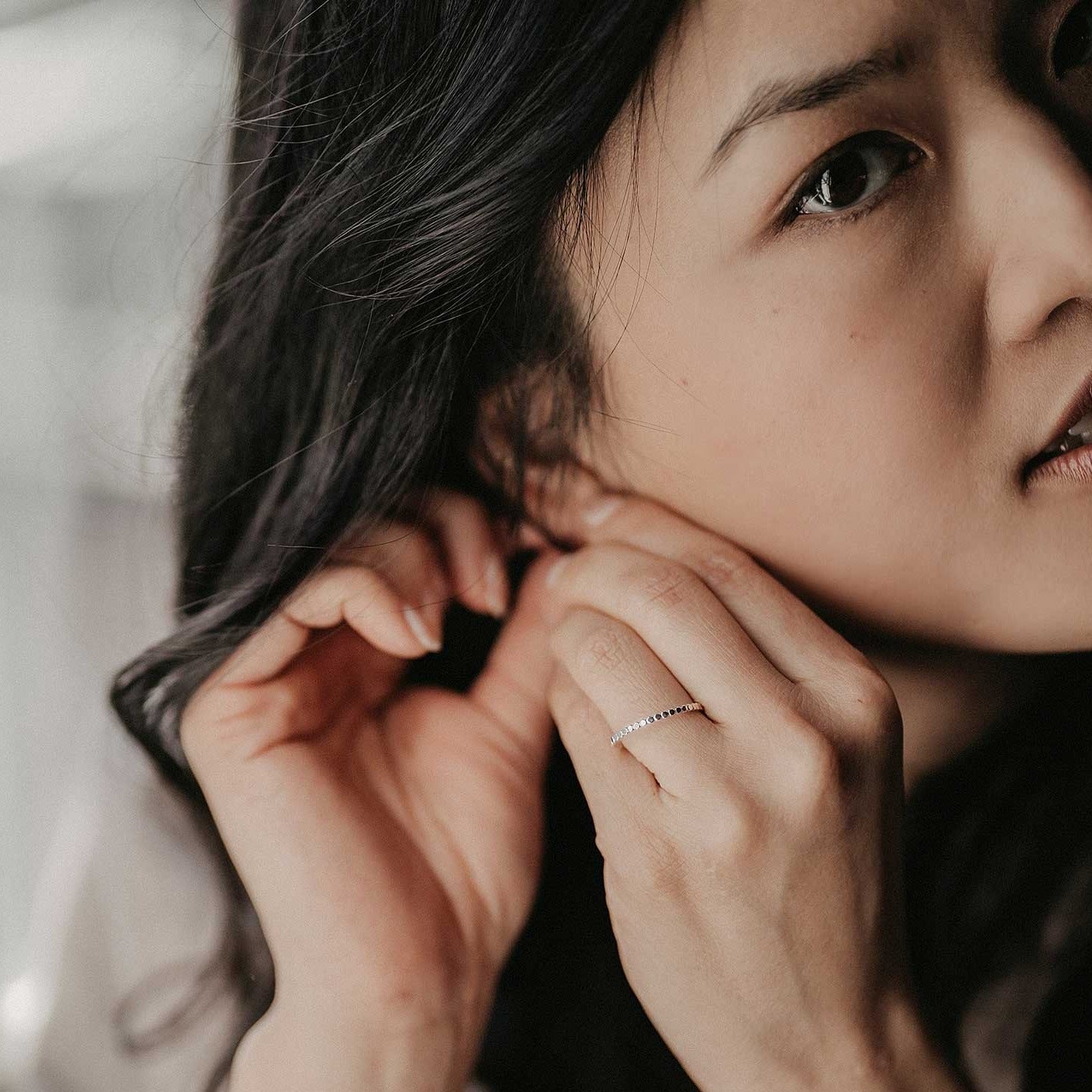 Unser Blanca-Ring stammt aus einem kleinen Atelier bei Berlin und wird dort mit viel Liebe zu 100% von Hand gefertigt. Seine strahlenden Oberflächen-Details fangen jeden noch so kleinen Sonnenstrahl ein. Er wird aus hochwertigem 925 Sterling Silber gefertigt und ist wasserfest, so ist er der perfekte Begleiter für jeden Tag.