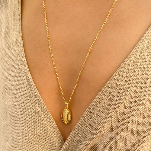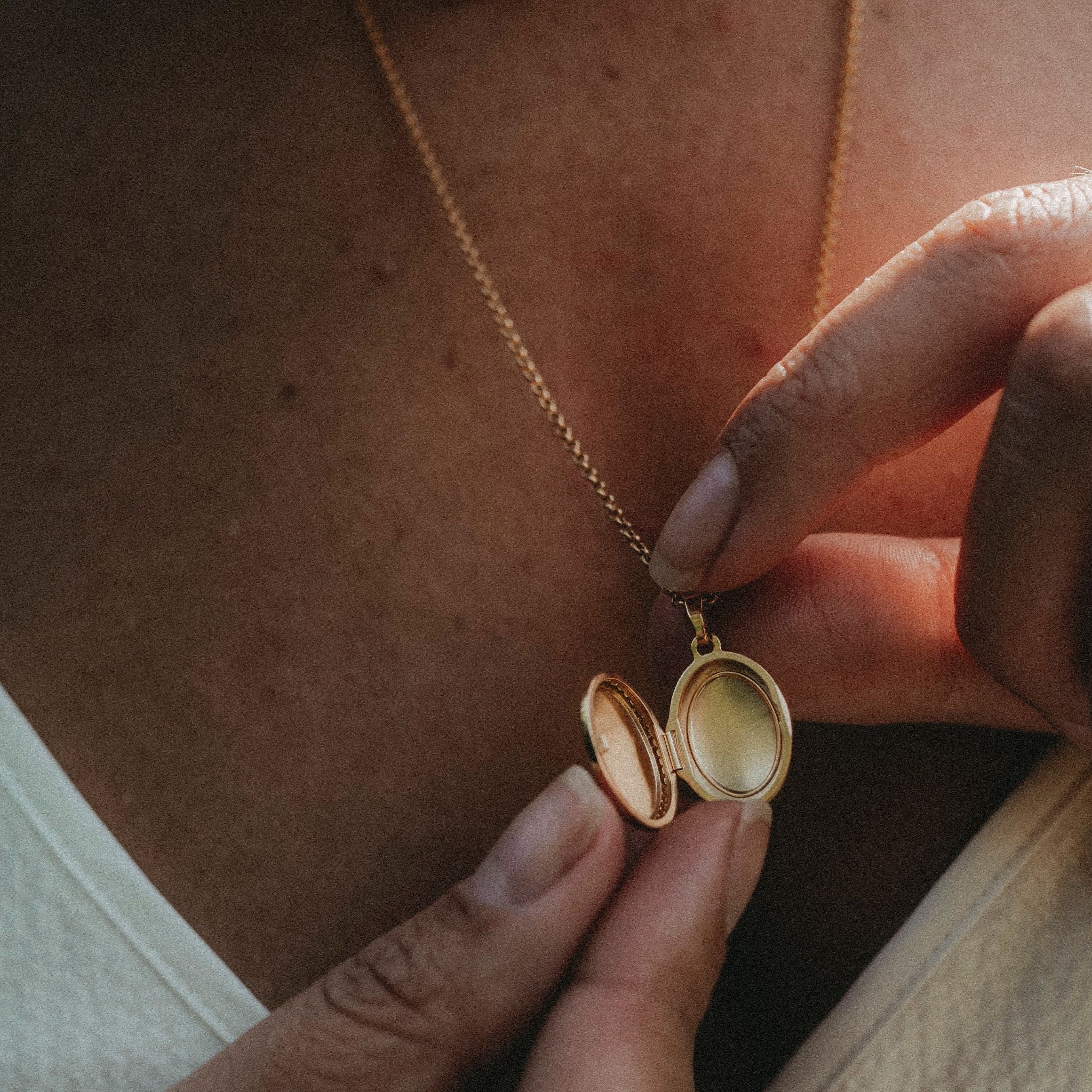 Lasse eine besondere Erinnerung mit unserer Sara Medaillon Kette ewig werden. Dieser Kette ist beidseitig tragbar, aufklappbar und ermöglicht es, ein Foto oder etwas Persönliches darin zu tragen. Mit diesem Schmuckstück können Sie einen bedeutungsvollen Moment ein für alle Mal festhalten.