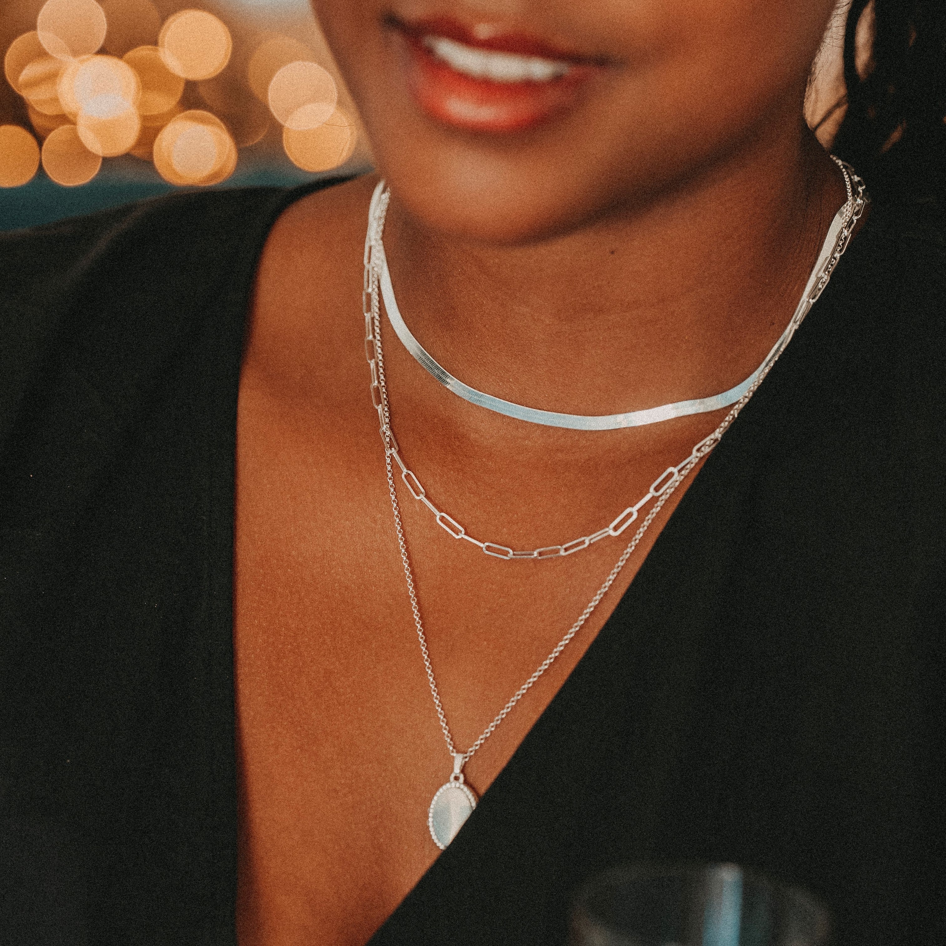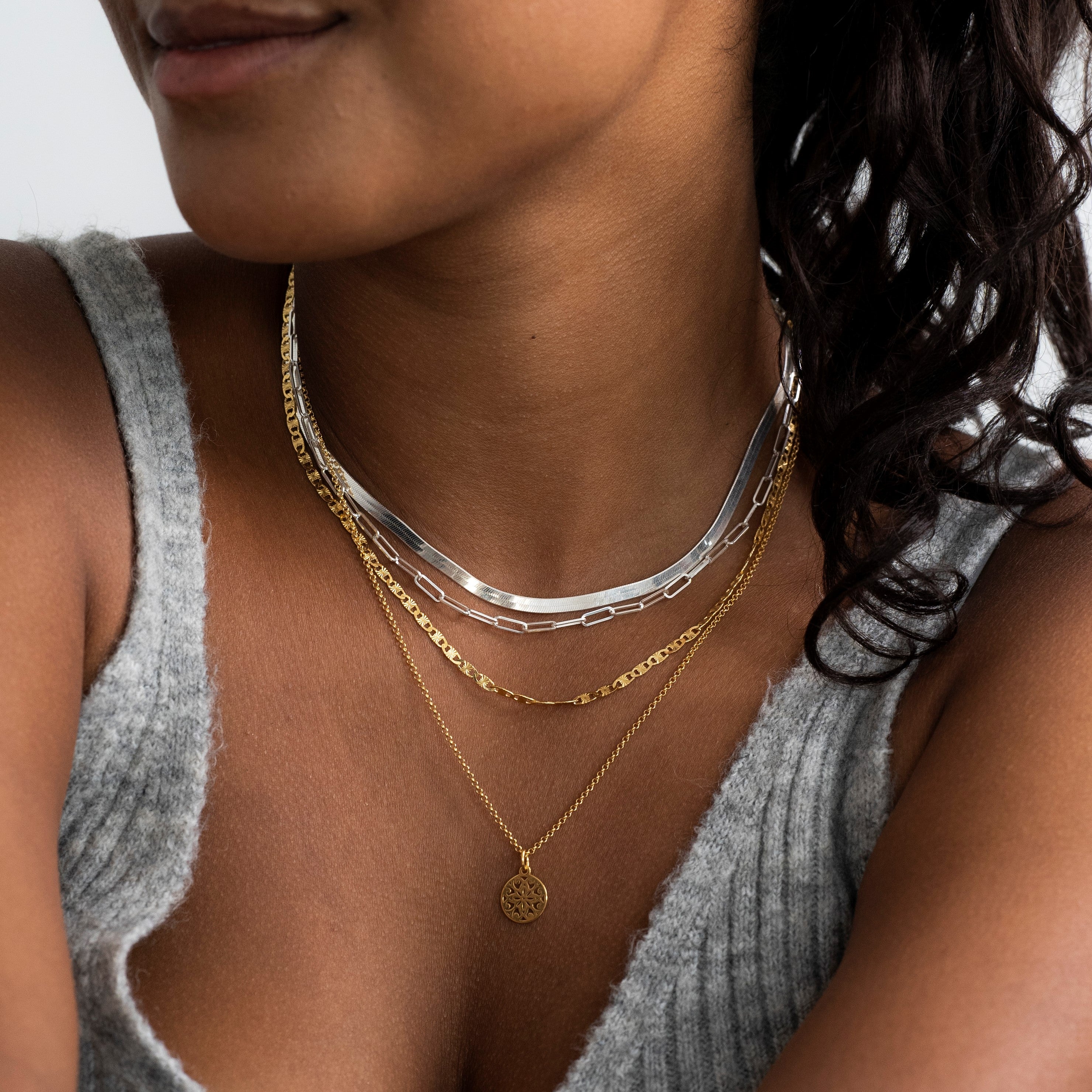Eine Kette mit vielen Fassetten. Je nachdem mit welchem Accessoires du unsere Ponza Kette kombinierst, erstrahlt sie lässig & cool oder glamourös & elegant. Mixe sie mit anderen Ketten - dafür ist sie gemacht.