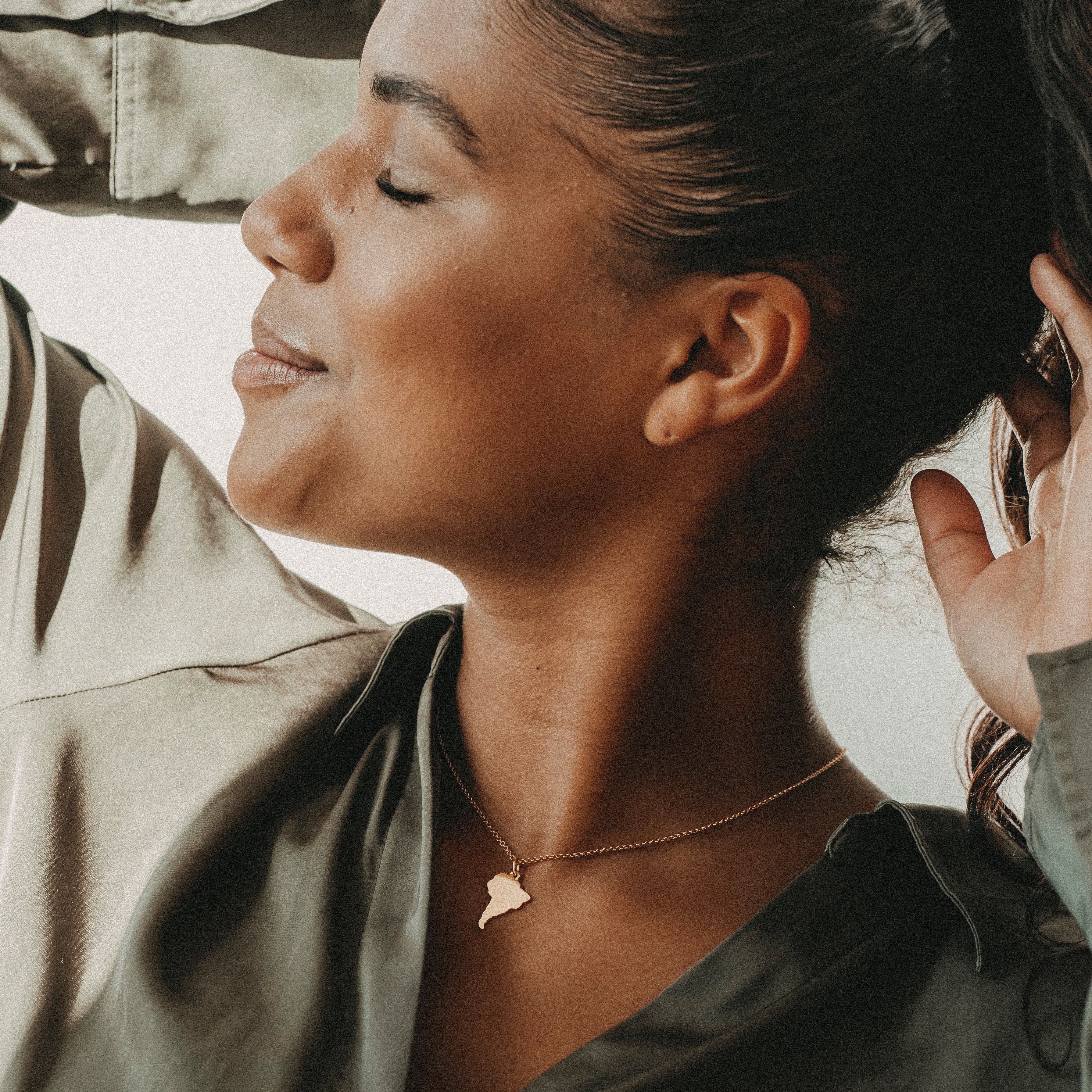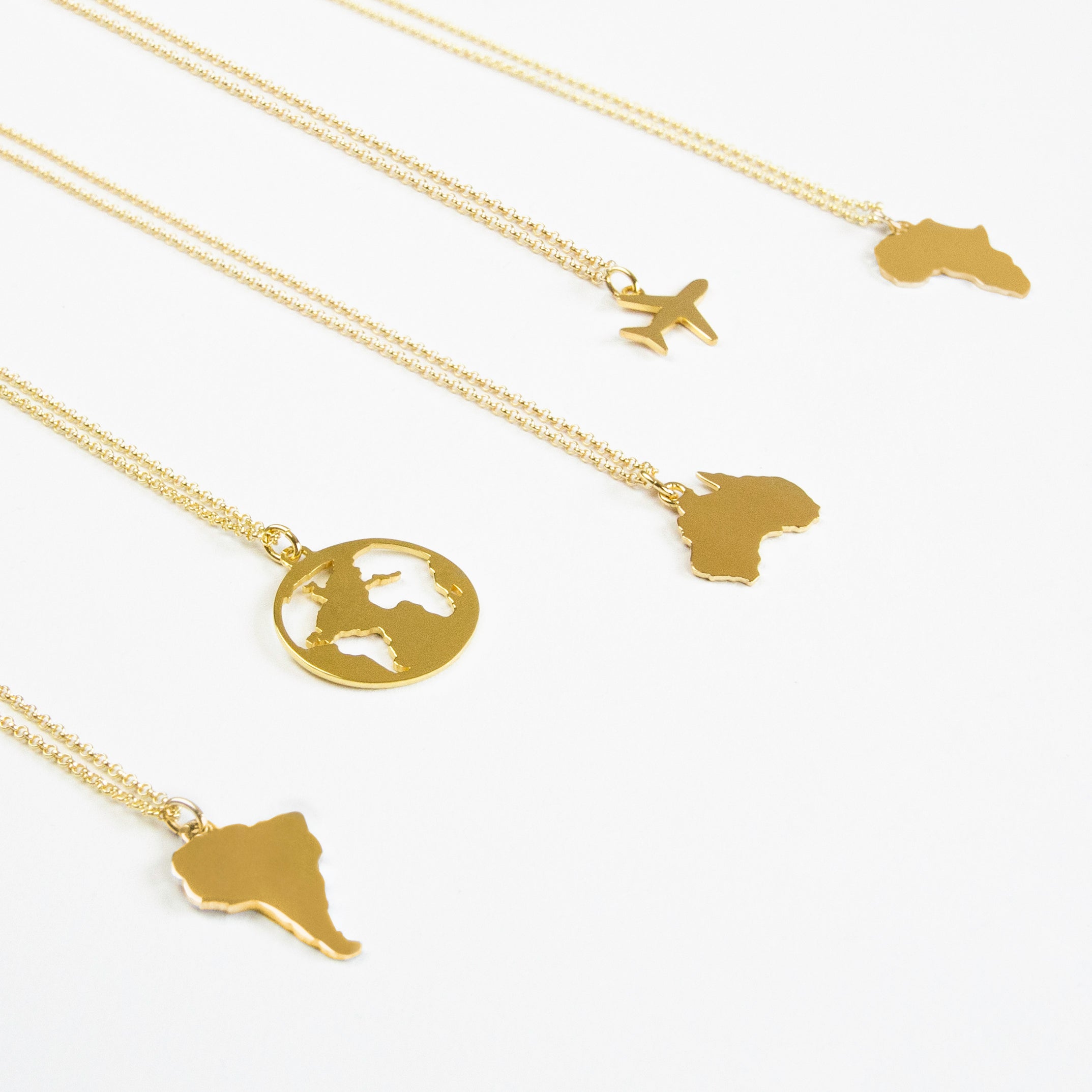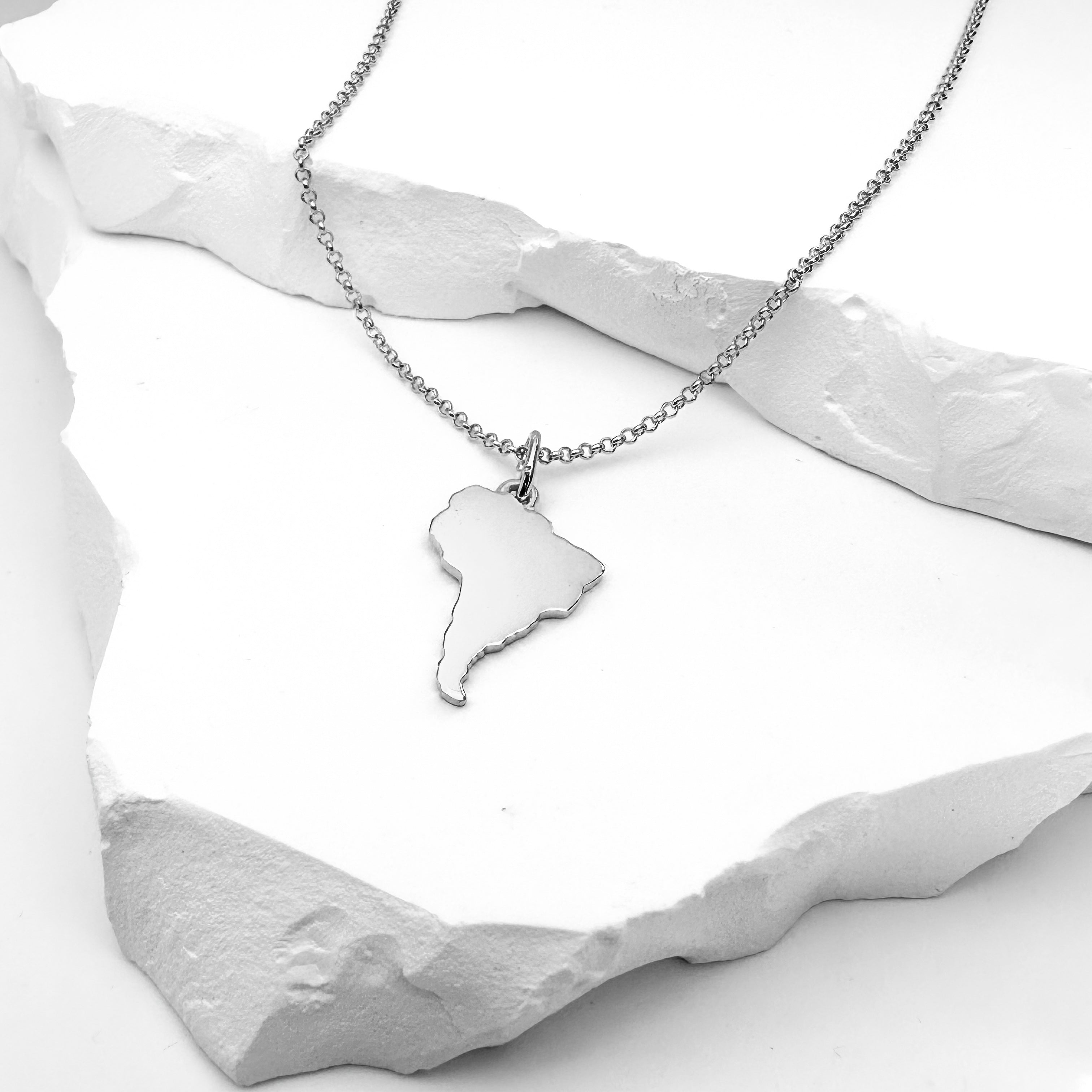 Dieser filigrane Anhänger zeigt die Umrisse Südamerikas und hängt an einer feinen Kette. Ein besonderes Stück, das dich an unvergessliche Momente auf deinen Reisen und an die Schönheit Südamerikas erinnern soll.