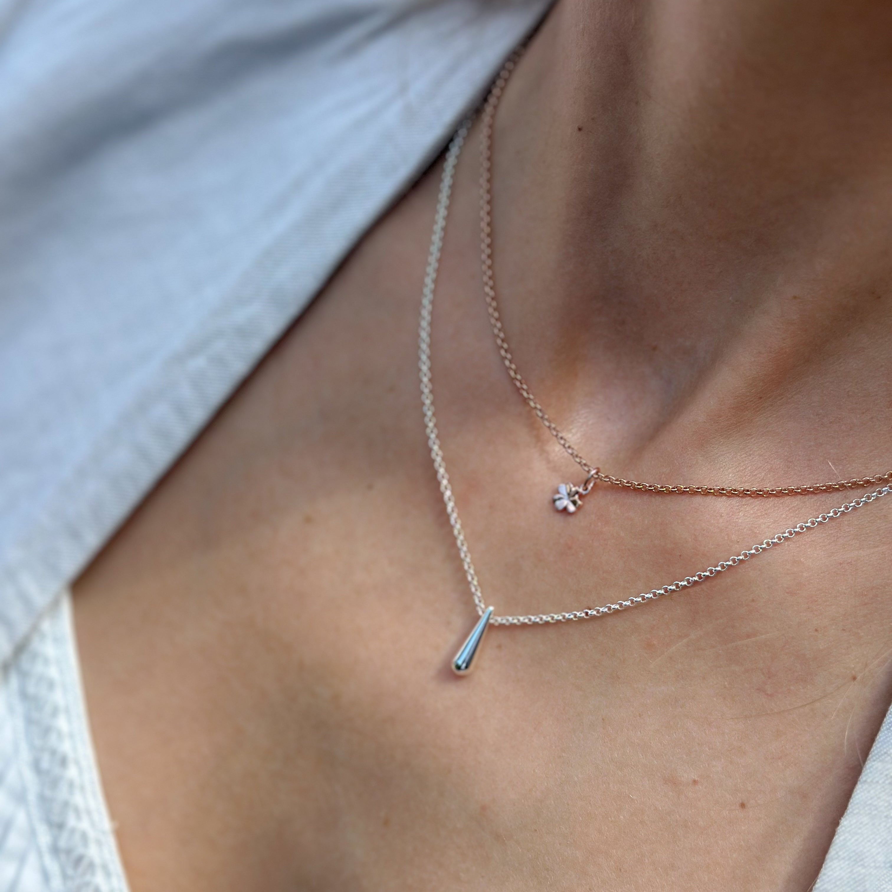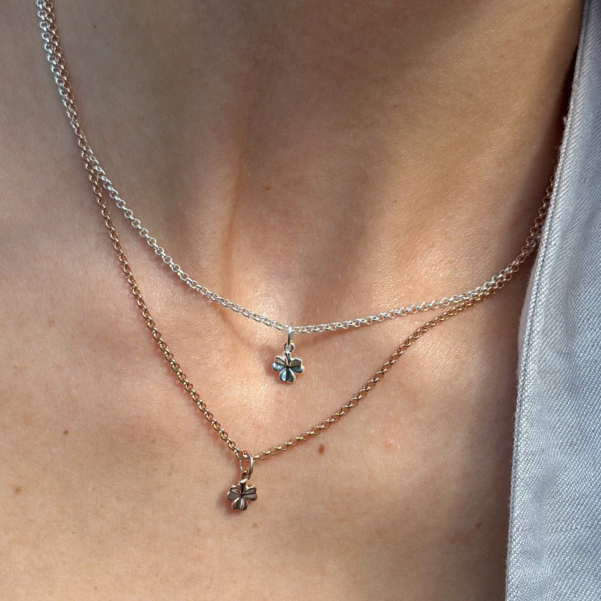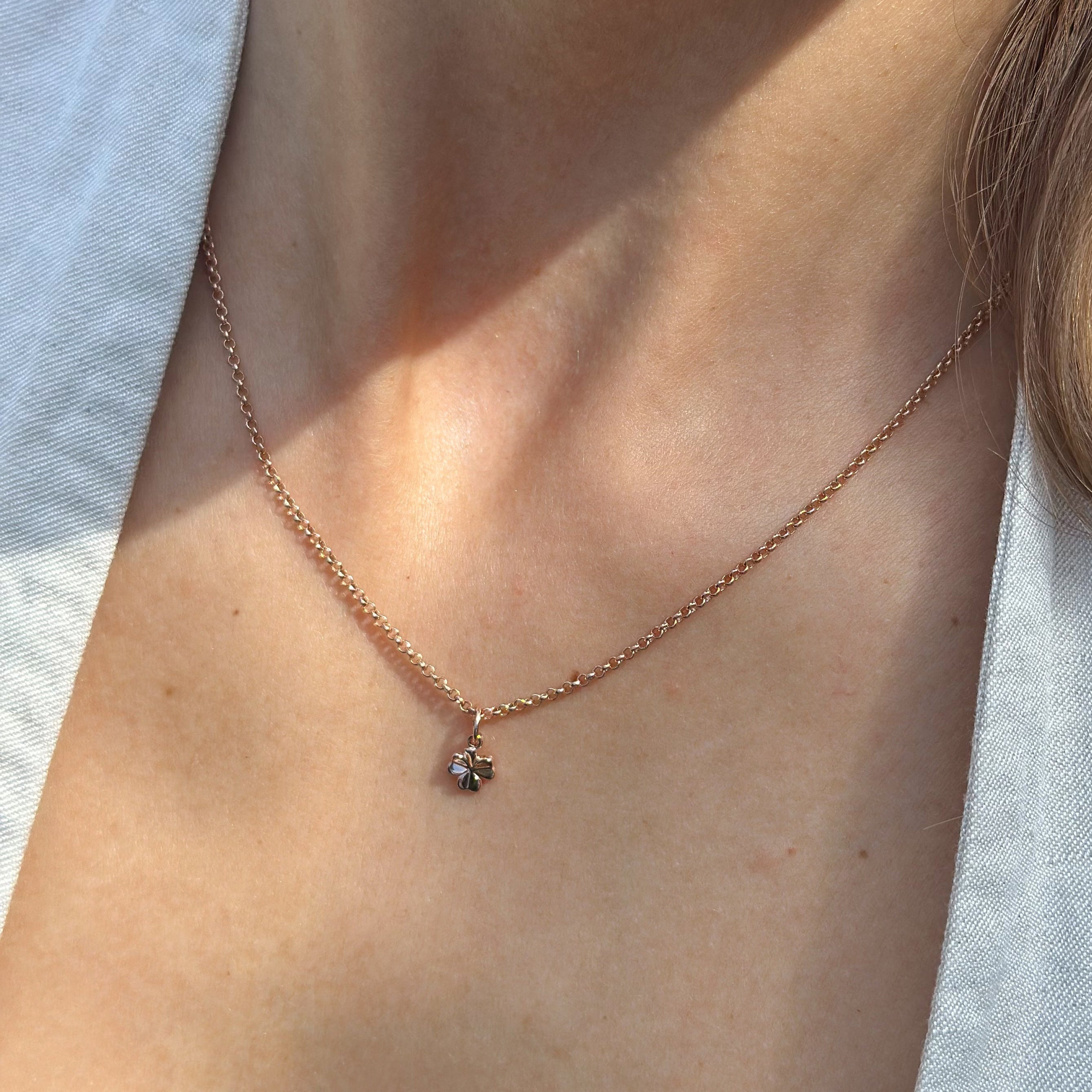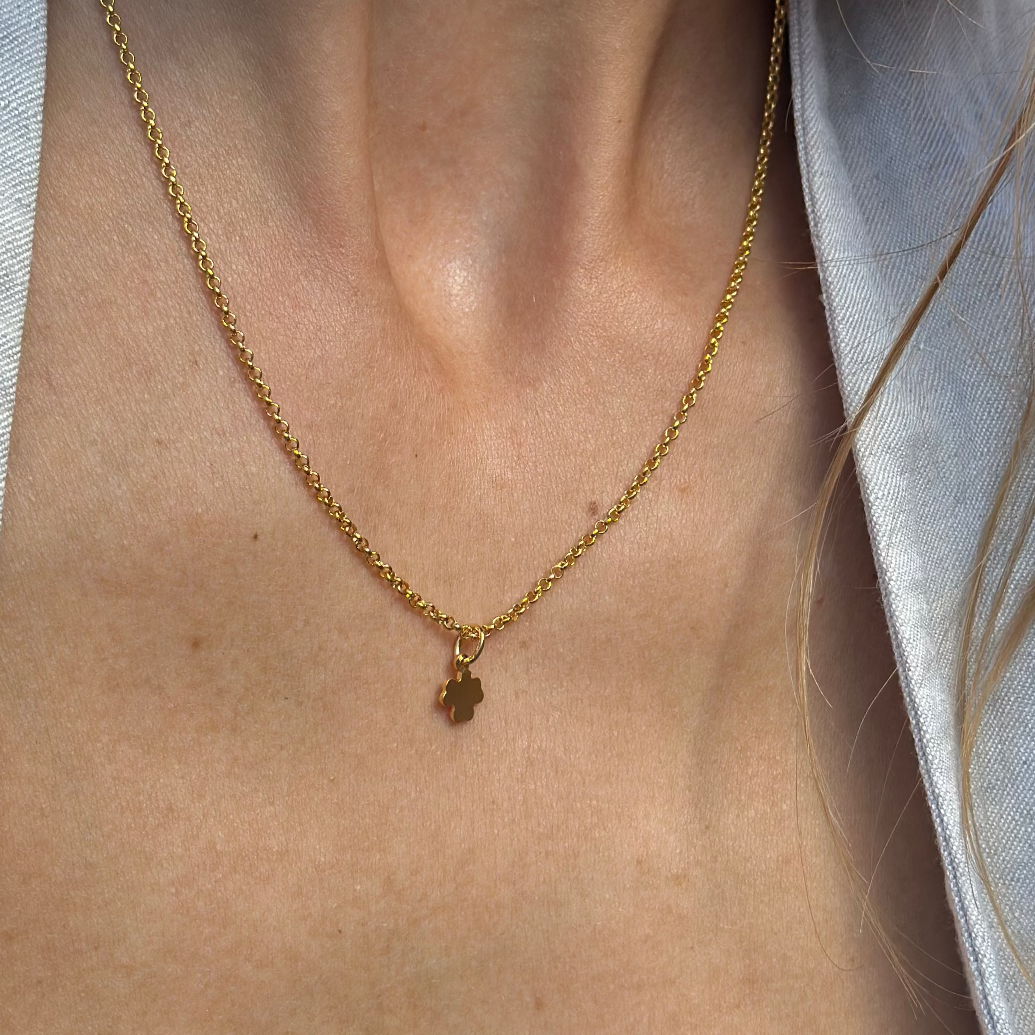 Die Suerte Kleetblatt Halskette verbindet minimalistisches Design mit kraftvoller Symbolik. Das zarte Kleeblatt steht für „Glück“ und bringt eine Botschaft positiver Energie mit sich. Leicht und verspielt, begleitet dich diese Kette stilvoll und erinnert dich daran, dass Glück stets an deiner Seite ist.