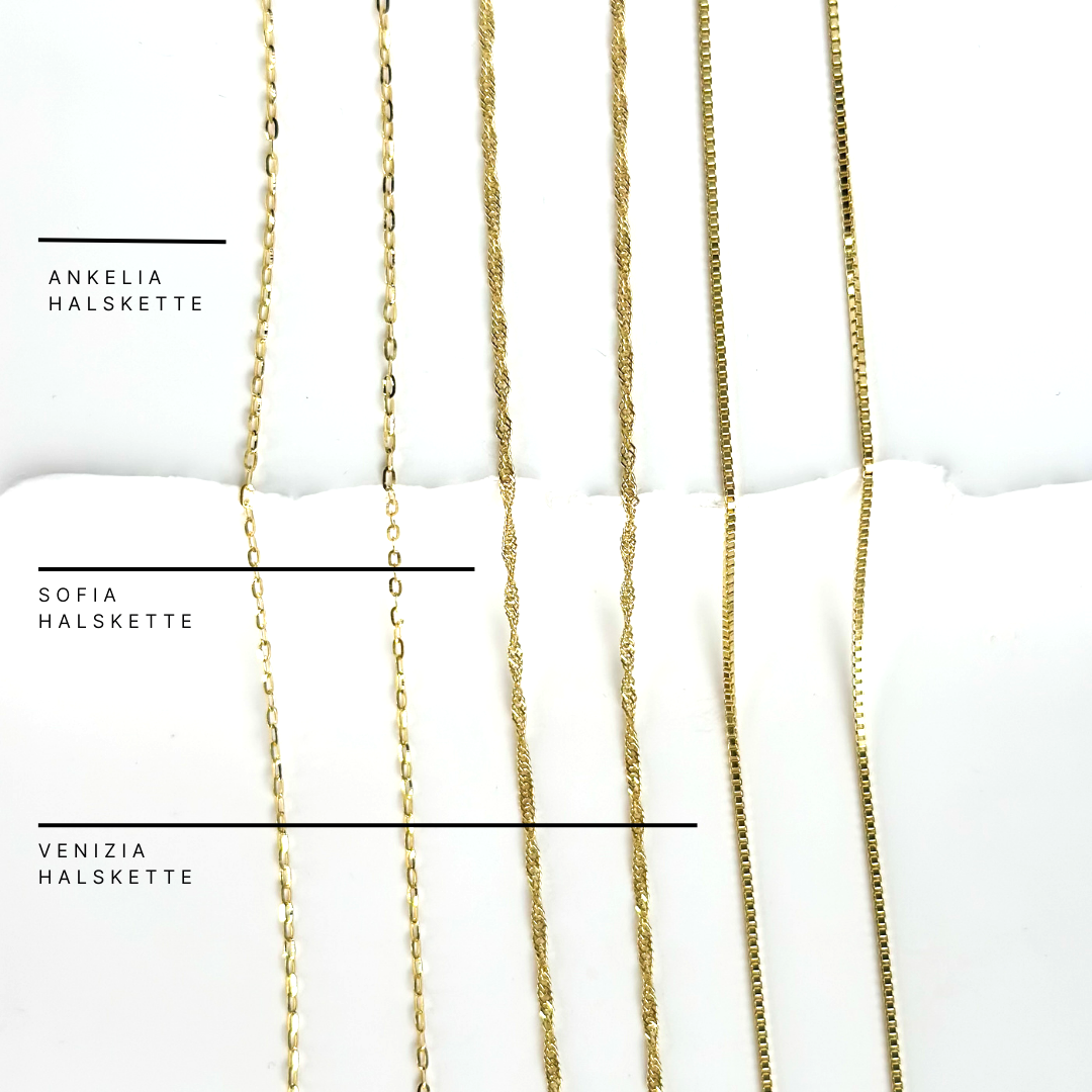 Unsere wunderschöne, hochwertige Vinizia Echtgold-Halskette ist ein vielseitiges Basic-Piece für alle deine Looks. Ob alleine glänzend oder als Basis für deine Charms und Layering-Looks.